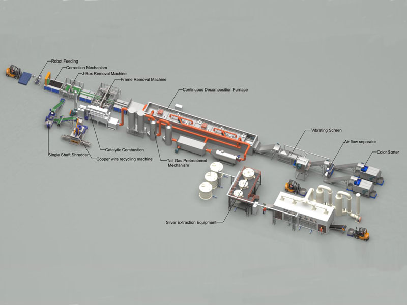 Once the panels are sorted and pre-treated, the next step is disassembly. Aluminum frames are removed, as they are easily recyclable and can be reused in the production of new frames. The glass covering the panel is separated from the internal components, and junction boxes are removed to recover any metal wiring or connectors. This step is crucial for isolating the different materials and preparing them for further processing.