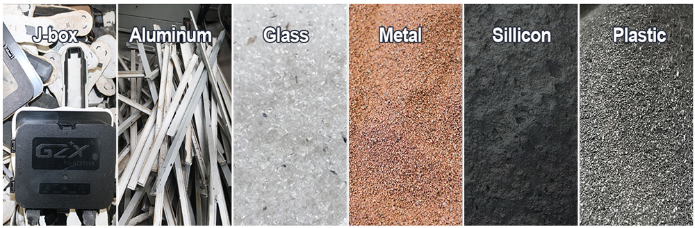 Frames, cables, and junction boxes are removed - Crushing and Size Reduction