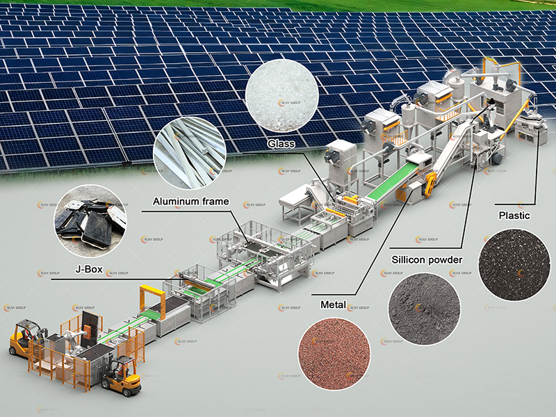 Modern solar panel recycling plants use a combination of mechanical and thermal technologies: